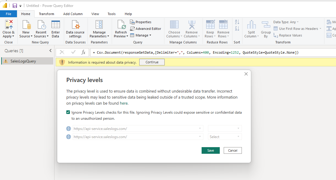 Source = Csv.Document(responseDeltaData, [Delimiter=",", Columns=400, Encoding=1252, QuoteStyle=QuoteStyle.None])