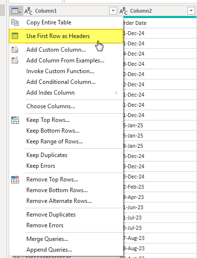 Step 4: Set the first row as headers and remove unnecessary columns.